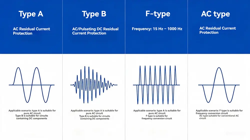 A2: 瞬時トリップ特性を備えた、タイプ A またはタイプ AC の 1P+N または 2P 構成を推奨します。